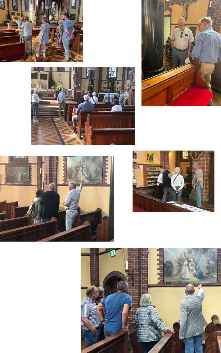 U zult zich verbazen over het interieur van deze kerk, neem de glas-in-loodramen boven het hoofdaltaar, van de Maastrichtse glazenier Huub Levigne, uit 1948 en het glas-in-loodwerk in de kruiskapellen van Balendong uit 1950. Vele bezoekers hebben ook bewondering voor de kruiswegstaties, geschilderd door de bouwpastoor Hendriks in de jaren 1916-1920. De figuren op de doeken zijn o.a. parochianen die model hebben gestaan. Zoekplaatje voor de bezoekers, de pastoor heeft zichzelf ook ingeschilderd. Op welke van de veertien staties kun je hem zien? Kijk ook even naar de pilaren, deze komen uit de steengroeven van de rivier de Ourthe en heten daarom ‘Petit basalt d’Ourthe’. Zoek naar de fossielen van beestjes en schelpen in deze pilaren. Ook graag uw aandacht voor het ‘Rococo-altaar’ van rond 1760 en afkomstig uit het r.-k Jongensweeshuis in Amsterdam. Werkelijk een icoon op zich. Voor het hoofdaltaar staat nog een altaar. Waarom? Dat hoort u vast bij de rondleiding. En kent u, ken jij, het echte verhaal van de r.-k kerk die nooit is gebouwd? Vraag er maar naar op Open Monumentendag.