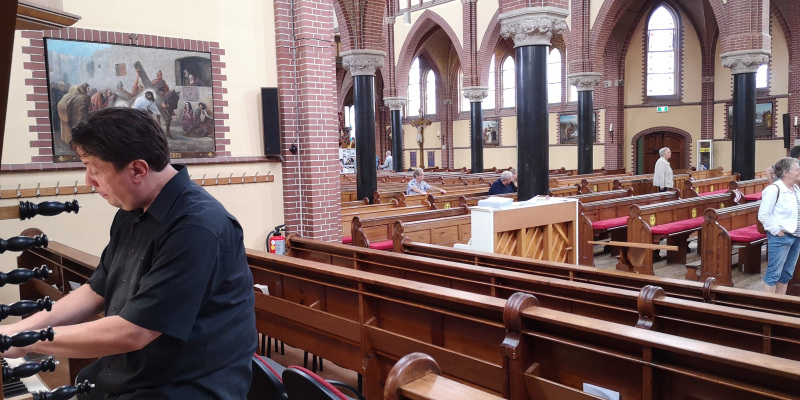 De hele dag wordt door speciale gidsen een klim naar boven naar de uurwerkzolder georganiseerd. Daar krijgt u alle uitleg over het uurwerk. U hoeft zich hiervoor niet aan te melden. U kunt ook door de gidsen naar boven worden begeleid voor een bezoek aan o.a. de vroegere koorplek bij het Pelsorgel, met een schitterend uitzicht over het kerkgebouw, of zelfs naar de gewelven. Kerkmusicus Niek van der Meij bespeelt in het kader van de Nationale Orgeldag vanaf ongeveer 15.00 uur het Reil-orgel voorin de kerk. Dit kwam enige jaren geleden in de kerk vanuit De Moeder Gods uit de Voorschotense parochiekern van de parochie H. Augustinus. Aansluitend bespeelt hij boven de kerkingang het Pels-orgel, van de bekende orgelbouwerfamilie uit Alkmaar, dat in 1923 achterin de kerk is geplaatst. Neem de trap gerust naar boven om te kijken / luisteren en Niek alle vragen te stellen. En misschien mag u zelf ook uw talenten als organist(e) laten horen aan alle bezoekers.Van 10.00 – 17.00 uur kunt u natuurlijk ook op eigen gelegenheid de kerk bezoeken, in een kleine zeven maanden gebouwd, maar u kan ook op verzoek rondgeleid worden door één van de aanwezige gidsen.
