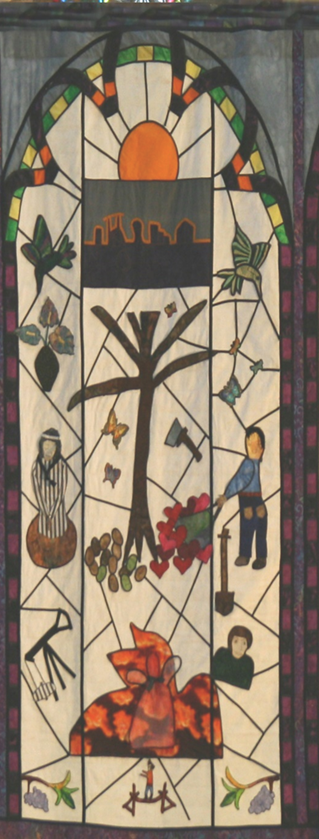 Elke zondag in de veertigdagentijd brengen we één raam onder ieders aandacht. Dat gebeurt in de kerk, waar u voor de viering ook een blaadje met informatie over het betreffende raam kan ontvangen, maar ook door deze de vrijdag ervoor in de digitale nieuwsbrief op te nemen. Dus bij deze! En om nog meer parochianen te bereiken, plaatsen we elk raam op de betreffende zondag ook op onze website (kunt u, kun jij, ook meelezen als u die zondagochtend het raam niet zelf voorin de kerk heb kunnen zien hangen). Bent u in de kerk, op zondag of doordeweeks, loop dan zeker gerust naar voren om de vijf quiltramen goed te bekijken. Meer dan de moeite waard!