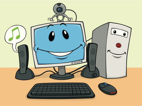 Vector illustration of a funny computer. All elements on separate layers, easy to edit or to use them separately. Document color mode: CMYK.