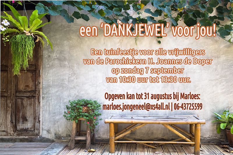 In deze serie over het ‘Jubeljaar 2025’, elke vrijdag in de digitale nieuwsbrief en de zaterdag erop op onze website, gaan we wekelijks op leuke feitjes en weetjes in om dit jaar dichterbij ons als lezers te brengen. Maar we volgen zeker ook de ontwikkelingen in onze eigen parochiekern waar het de ‘Pelgrims van hoop’ betreft. Om de vindbaarheid van die berichten te vergroten, wordt bij elk zo’n bericht het jubileumlogo opgenomen. In deze vierendertigste aflevering gaat het om de hoop van de organiserende pastoraatgroep van de vrijwilligersactiviteit zondag 7 september na de viering van 10.30 – 13.30 uur. Er hebben zich tot deze vrijdag een 45 vrijwilligers aangemeld maar we hebben er ruim tweehonderd dus…