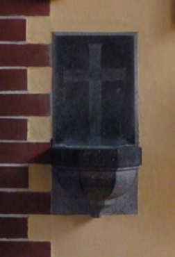 Deze twee hardstenen wijwaterbakjes bevinden zich dus naast de grote houten entreedeuren van ons kerkgebouw. Ze dateren uit de bouwtijd van de kerk tussen oktober 1910 en mei 1911. Het kantig-bollen bekken heeft een wandplaat met een gezoete afwerking en een gefrijnd kruis volgens het Latijnse type. Kijken we naar de juiste afmetingen dan zijn beide wijwaterbakjes identiek en wel 47 cm hoog, 22 cm breed en 15 cm diep. Ze verkeren beide in een goede staat en dat is ook logisch. Want meer dan wijwater heeft er niet in gezeten en… ze zijn nooit verplaatst, ook niet bij de vele interne verbouwingen in katholieke kerken naar aanleiding van het Tweede Vaticaans Concilie in de jaren zestig. Die verbouwing heeft er immers ook in ons kerkgebouw plaatsgevonden.